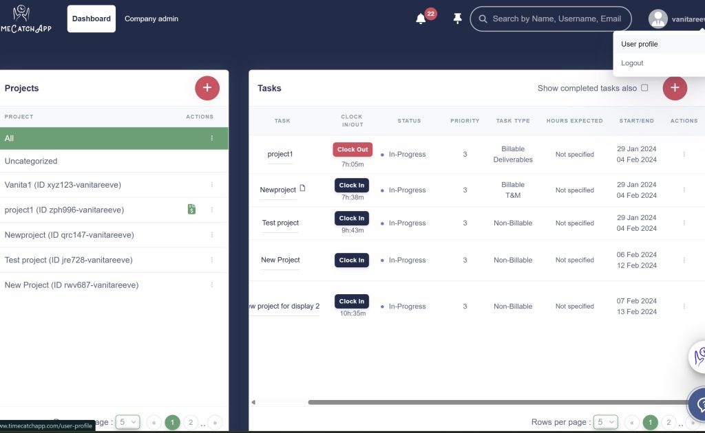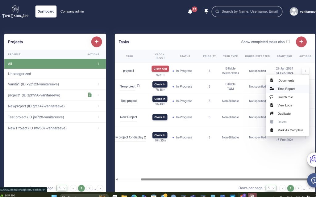 Your journey begins at the dashboard—your gateway to all Time Catch App features. Here’s how the general workflow unfolds.