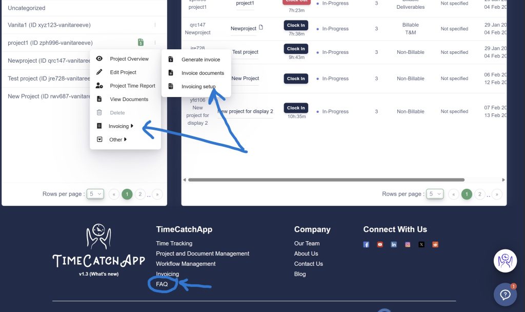 In addition to basic functionalities, Time Catch App offers advanced tools to further enhance your efficiency. The recently added direct invoicing feature is perfect for billable projects in consulting organizations. Be sure to take advantage of these offerings by signing up today. You can learn more about our offerings by clicking the FAQ button on the dashboard for more details.